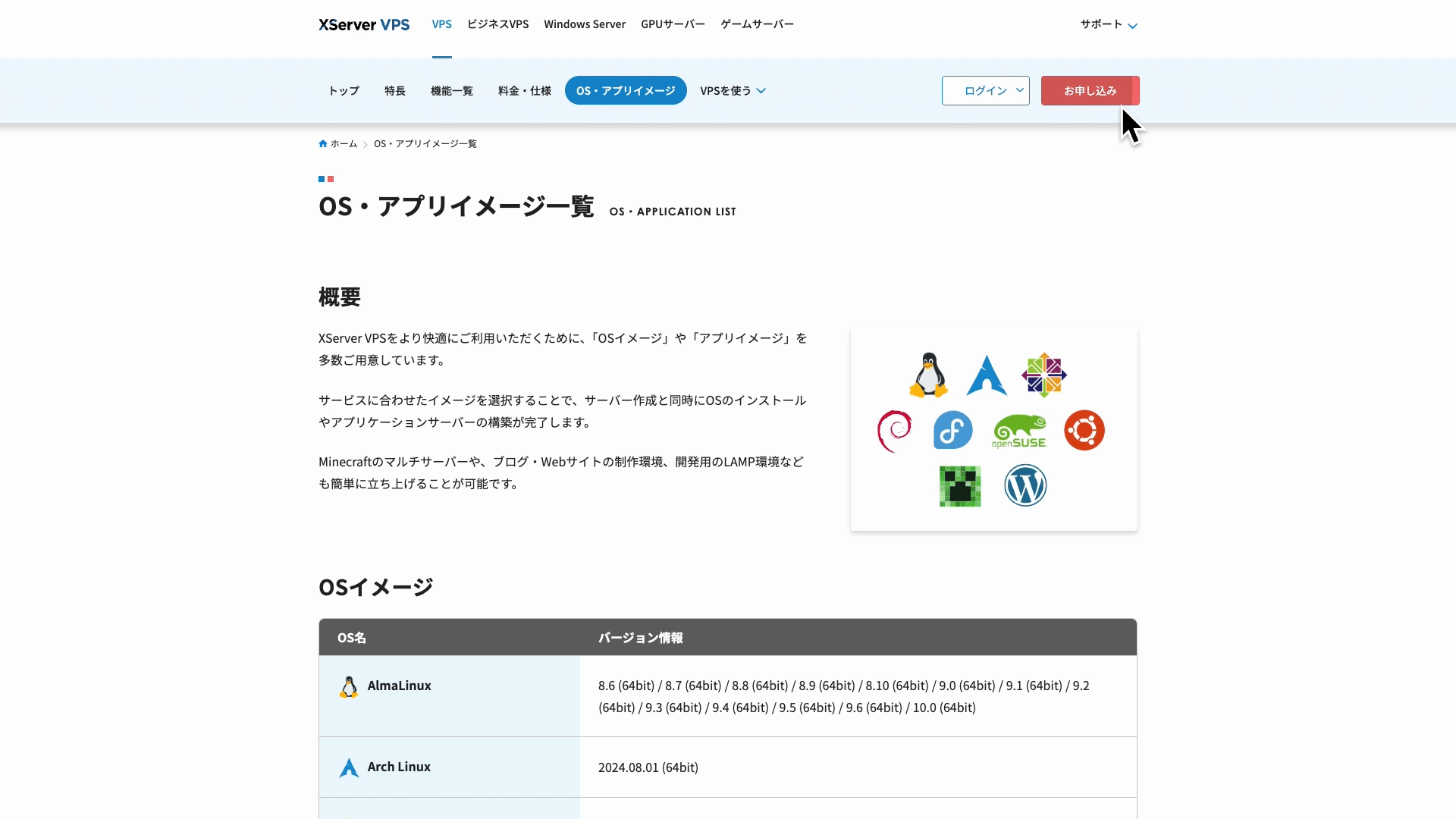 - 豊富なOSイメージ: 様々なLinuxディストリビューションやアプリケーションイメージを提供