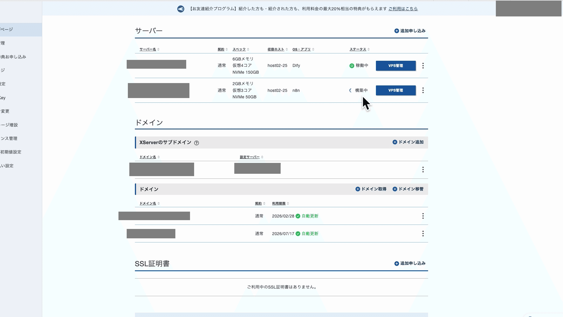 - ドメイン管理: 独自ドメインの設定(オプション)